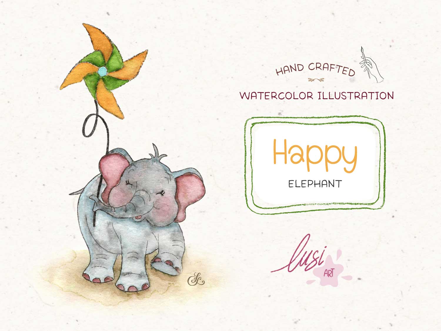 Happy Elephant Clipart: Watercolor Clip Art | baby animal clipart | baby birth announcement | nursery art | children’s birthday | hand drawn clipart