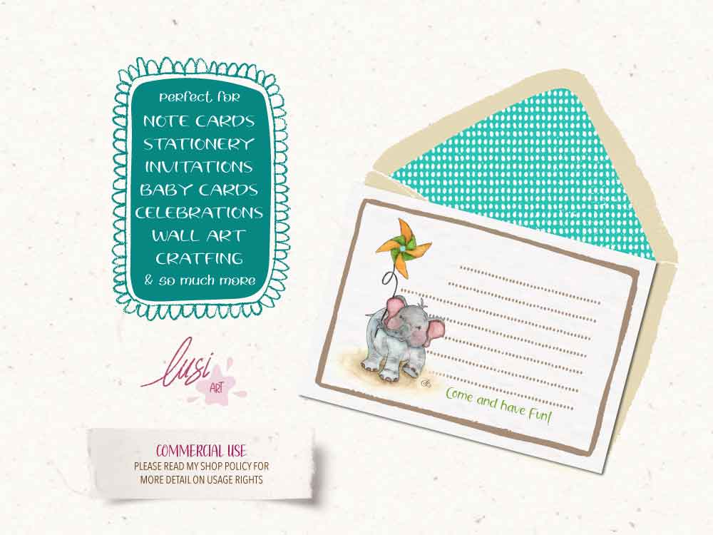 A charming baby elephant! Brighten-up your creations with this sweet watercolour elephant. This cute happy elephant was hand crafted with watercolors and lots of love, wonderfully suited for child related projects.  Add a whimsical touch to a birth announcement, children’s birthday invitation, stationery, birthday cards, note cards or just a lovely nursery art print!