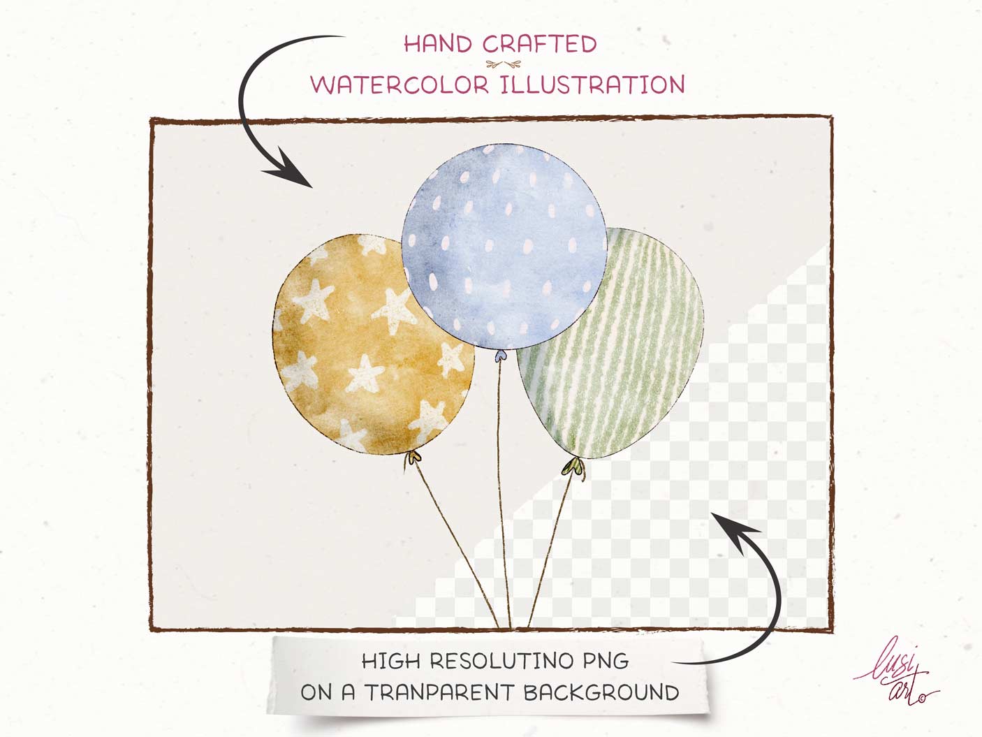 Tap into your imagination and create the cutest designs with this adorable hand painted watercolor party balloons graphic resources. I created this illustrations to save you time and to help you easily create super cute projects. I hope you enjoy creating with these.